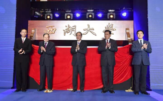 中共浙江省委书记车俊讲话,省委副书记、省长袁家军出席,全国高等学校设置评议委员会主任杜玉波宣读教育部贺辞。韩启德、袁家军、杜玉波和西湖大学董事会名誉主席杨振宁、西湖大学校长施一公共同为西湖大学揭牌。