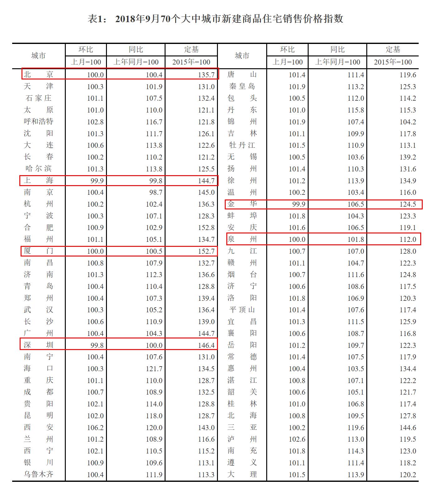 2018年9月份70个大中城市商品住宅销售价格变动情况。