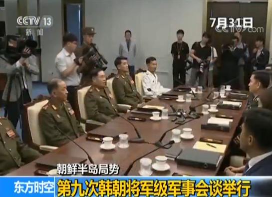 7月31日上午10点,第九次韩朝将军级军事会谈在板门店举行,韩方首席会谈代表金度均(韩国国防部对朝政策官、陆军少将)率一名陆军大校、一名海军大校、统一部会谈课长、青瓦台国安室行政官参会。朝方首席会谈代表安益山率两名陆军大校、一名海军大校、一名陆军中校参会。