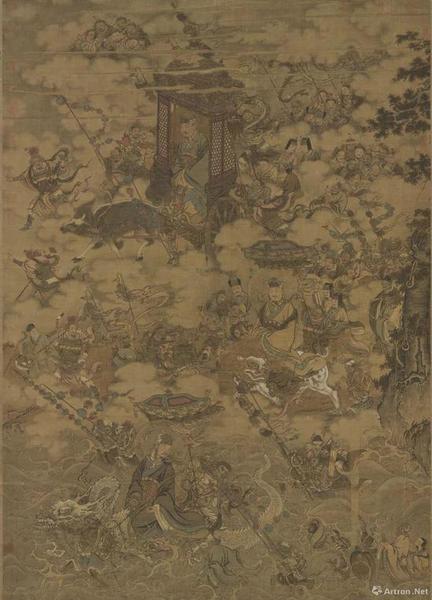 宋 马麟《三官出巡图》,绢本设色,纵174.2厘米,横122.9厘米,现藏台北故宫博物院