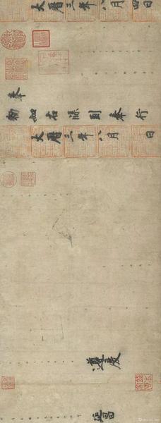唐 徐浩 《朱巨川告身》紙本 行書 卷27x185.8公分,现藏台北故宫博物院
