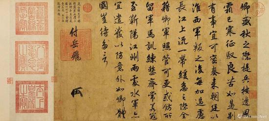 宋高宗 赵构御笔《赐岳飞手敕卷》 纸本 行楷 纵36.7cm 横67.5cm,现藏台北故宫博物院