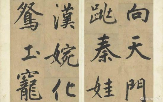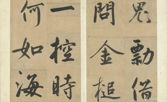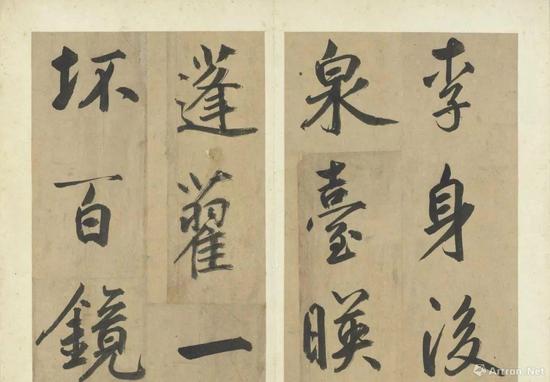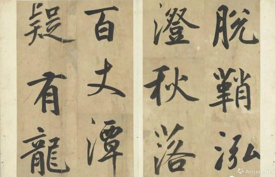 黄庭坚作为苏轼的学生,其早期书法作品受苏东坡影响较大,及至中年,黄庭坚从《瘗鹤铭》中得到灵感,在书风上逐渐与苏轼“分道扬镳”,并形成“中宫紧缩,四周伸展”的辐射式书体,成为宋代最富个性的书家之一。
