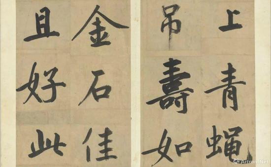 蔡襄,行、草、楷书皆善,其楷书在四人中成就最高?!渡献收梢槊鞴唠埂罚ㄓ置逗S缣罚闶遣滔宓目榇?,典雅娟秀,婉丽蕴藉,得晋唐之真传。