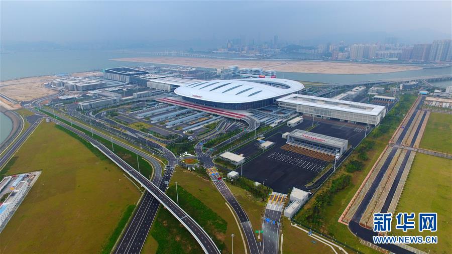 10月24日无人机拍摄的港珠澳大桥珠海公路口岸。新华社记者梁旭摄