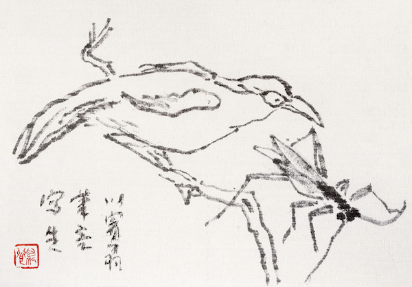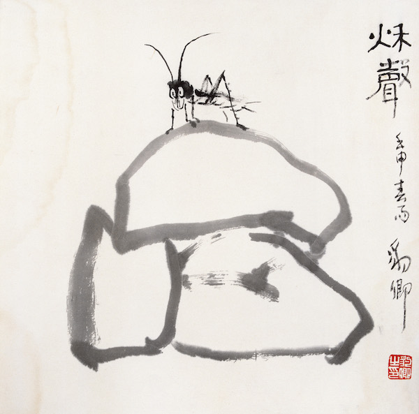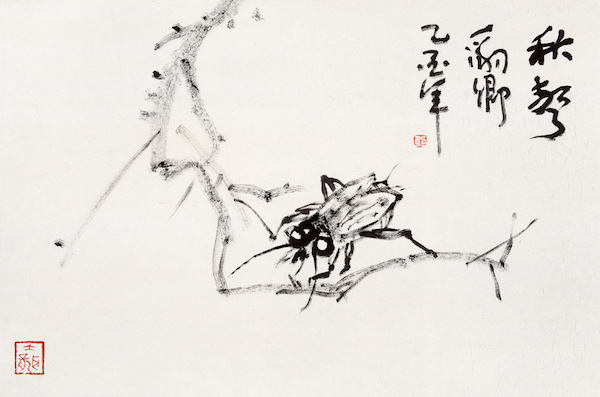 画到这一步,可以说怎么画都是好的,而绘画的题材聚焦于写意花鸟,因而更见其精纯处。古木系列、鱼蛙系列、秋虫系列、鸟雀系列以及各种花卉的出现,其画越“无意于画”而越近于中国画的画道,到最后,看得出老人已完全画人合一,故完全无视当下热闹的一切,近乎孤独地存在,以自己的体认领悟中国画与人生的一切。