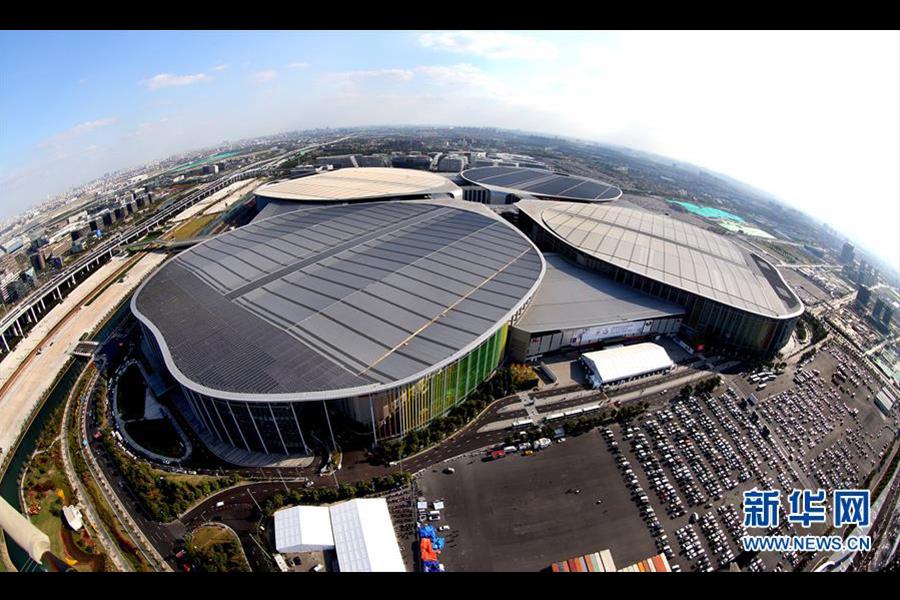 这是10月19日无人机拍摄的中国国际进口博览会举办场地——国家会展中心(上海)。 新华社记者 凡军 摄