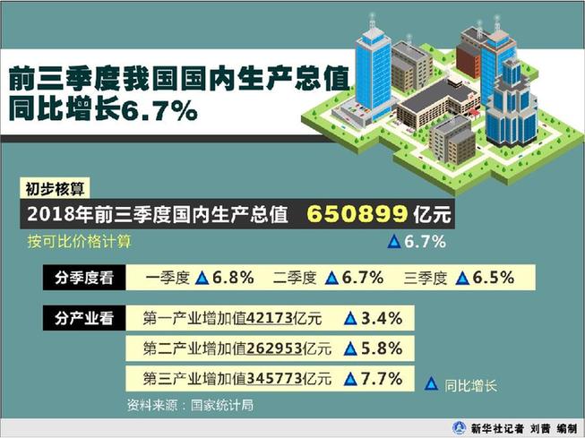 总的来看,前三季度国民经济运行在合理区间,当前中国经济稳的格局没有改变。从增长上看,前三季度我国GDP增速6.7%,为全年实现6.5%左右的增长目标打下了扎实的基础;从物价上看,全国CPI上涨2.1%,涨幅比去年同期扩大0.6个百分点,属于温和上涨;从就业上看,前三季度城镇新增就业超过1100万人,提前一个季度完成全年的目标任务;从收入上看,前三季度,全国居民人均可支配收入实际增长6.6%,增速和上半年持平,和经济增长速度也基本同步。