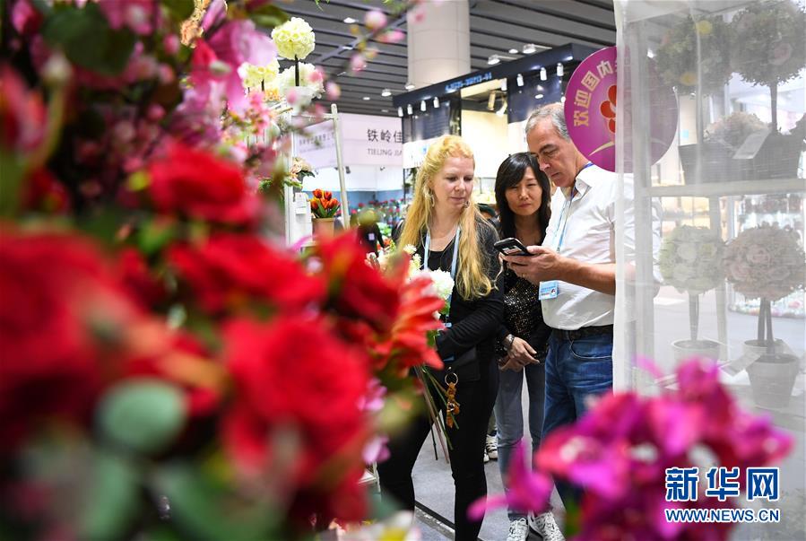 第124届广交会第二期上的仿真花饰展区(10月23日摄)。 新华社记者 邓华 摄