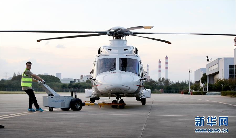 10月20日,意大利莱奥纳多直升机公司AW189直升机飞抵上海,将作为首届中国国际进口博览会上的展品,入驻智能及高端装备展区。新华社记者 方喆 摄