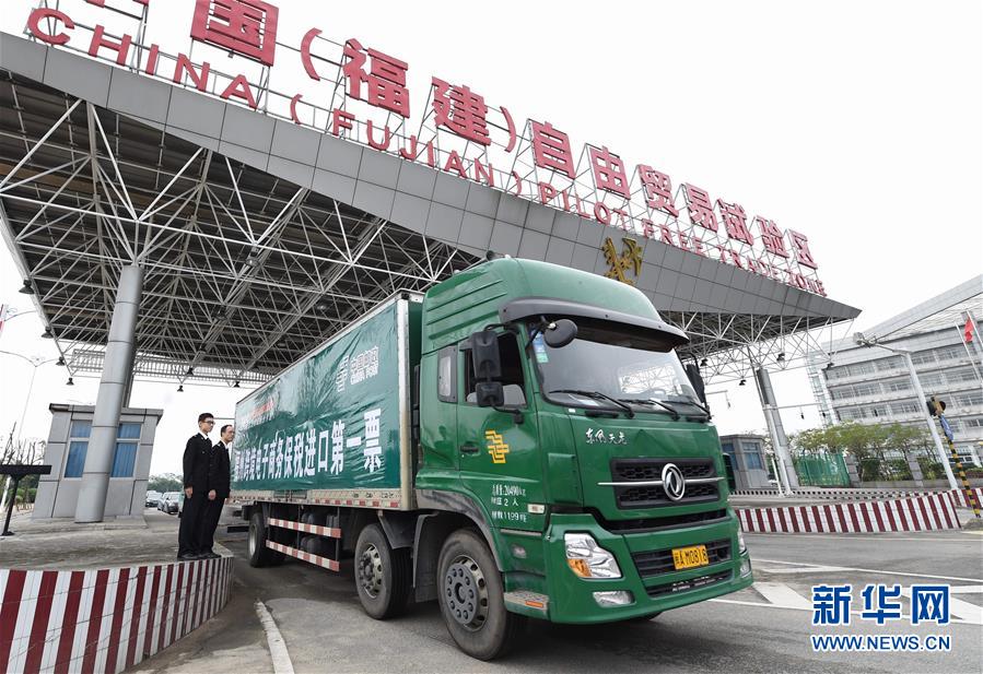 在福州出口加工区监管中心,福州跨境电子商务首票保税第一单通过福州海关监管后开出福州马尾出口加工区(2015年11月3日摄)。 新华社记者 林善传 摄