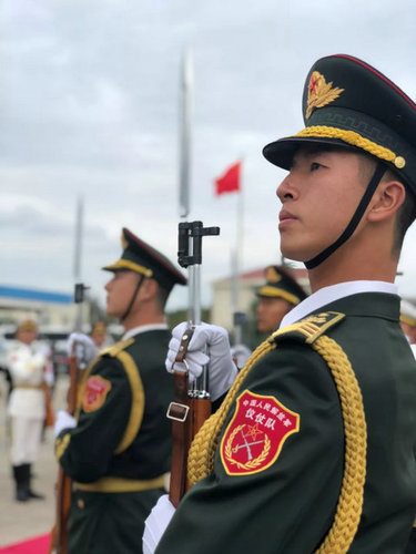 △上海虹桥机场的中国仪仗兵(央视记者汪曙光拍摄)