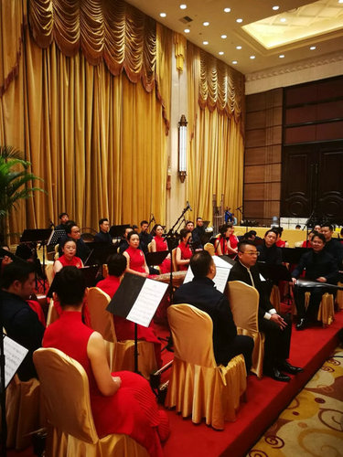 △等待演奏的乐队。今晚的第一首曲目是《紫竹调》。(央视记者周志国拍摄)