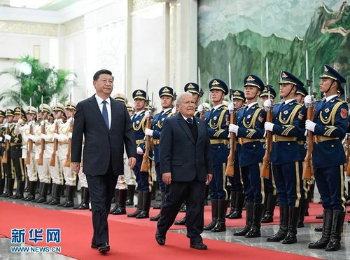 △11月1日,习近平在人民大会堂北大厅为桑切斯总统举行欢迎仪式。(新华社记者拍摄)