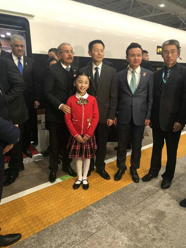 △11月3日晚上,多米尼加总统梅迪纳乘高铁抵达上海,受到热情迎接。(央视记者艾婉婷拍摄)