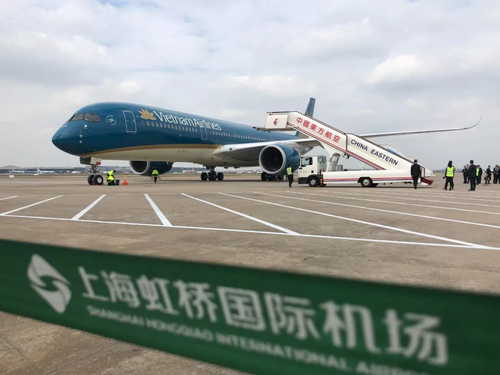 △这是越南总理阮春福乘坐的专机抵达上海虹桥机场(央视记者汪曙光拍摄)