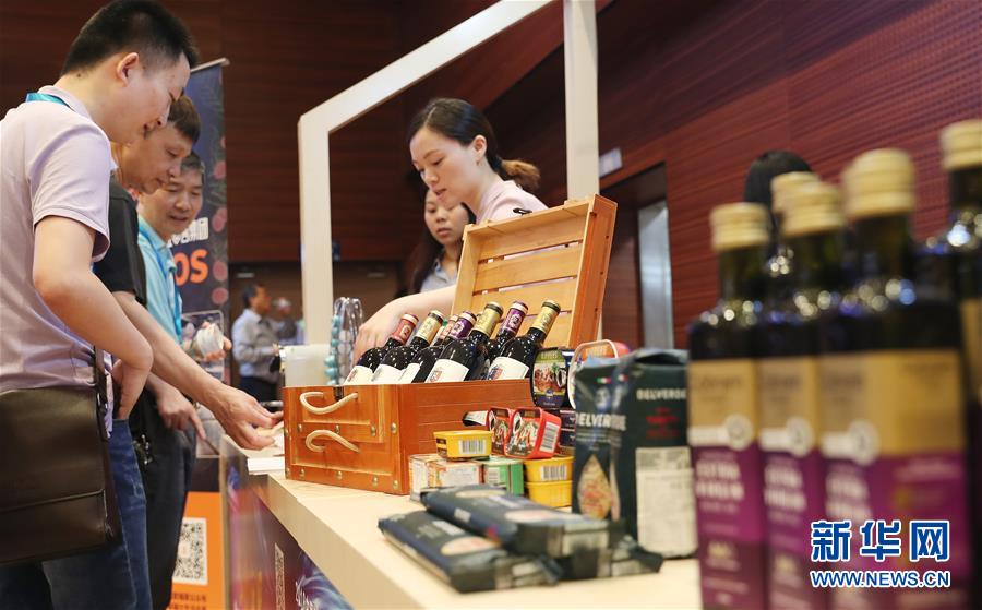 在上海举行的2018中国国际进口博览会食品展商客商供需对接会上,参观者向展商工作人员咨询商品信息(6月14日摄)。 新华社记者 方喆 摄