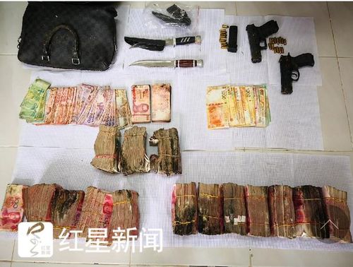 ▲警方缴获的赃款和作案凶器图据湖南省公安厅