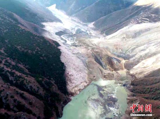 图为11月4日上午,航拍金沙江堰塞体情况。昌都市政府应急办 供图