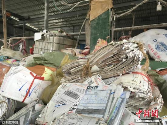 资料图:快递企业集中销毁快递详情单。吴清卿 摄 图片来源:视觉中国