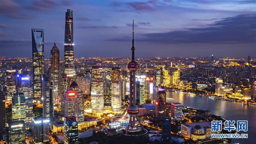 这是11月1日拍摄的上海陆家嘴夜景。 首届中国国际进口博览会即将在上海开幕。美丽的上海张开怀抱,迎接八方来客。 新华社记者 才扬 摄