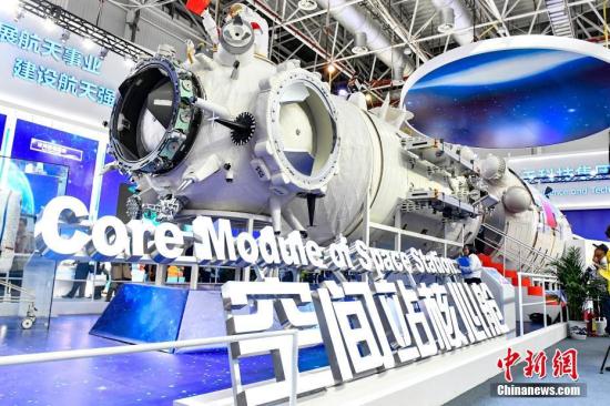 11月6日,第十二届中国国际航空航天博览会(即珠海航展)在珠海开幕,中国空间站“天宫”核心舱(工艺验证舱)亮相航展。中新社记者 陈骥旻 摄