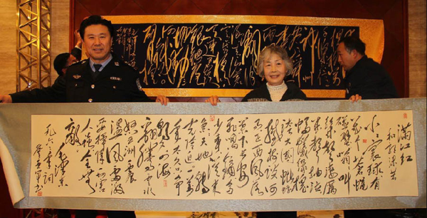 詹亚军研习“毛体”书法着实下了一番功夫。多年来,他充分感受要做到沉下身、沉下心、沉下力,要倾注很多的时间和精力,努力去领悟和揣摩掌握毛体书法的基本规律,方可达到形神兼备的效果?!懊濉笔榉ǜ惭蔷烁嗟募崛托愿窈透照话⒌恼?。作为一名警察,作为维护法律、诠释法律的执行者,学习和掌握“毛体”书法不仅是为弘扬红色文化贡献微薄之力,同时也是对毛泽东思想的传承。