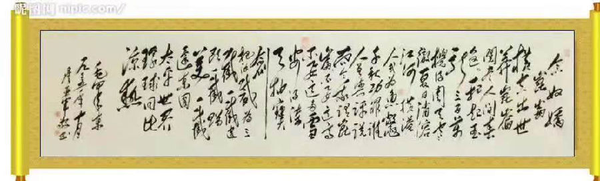 毛泽东的书法展示的是黑白世界,浓淡自然、互相衬托、彼此乎应,强化了书法艺术的感染力,充分体现了伟人对艺术求新求变的无限追求。他的草书是正侧、方圆兼备,取义自如、不露筋骨。根据字形,用笔遒劲、刚柔相济、变化莫测,充分展现了一代伟人的情怀。其每幅作品就像排兵布阵一样,有着决胜千里的信心,尤其是建国后的草书,同玄色容,美不胜收。