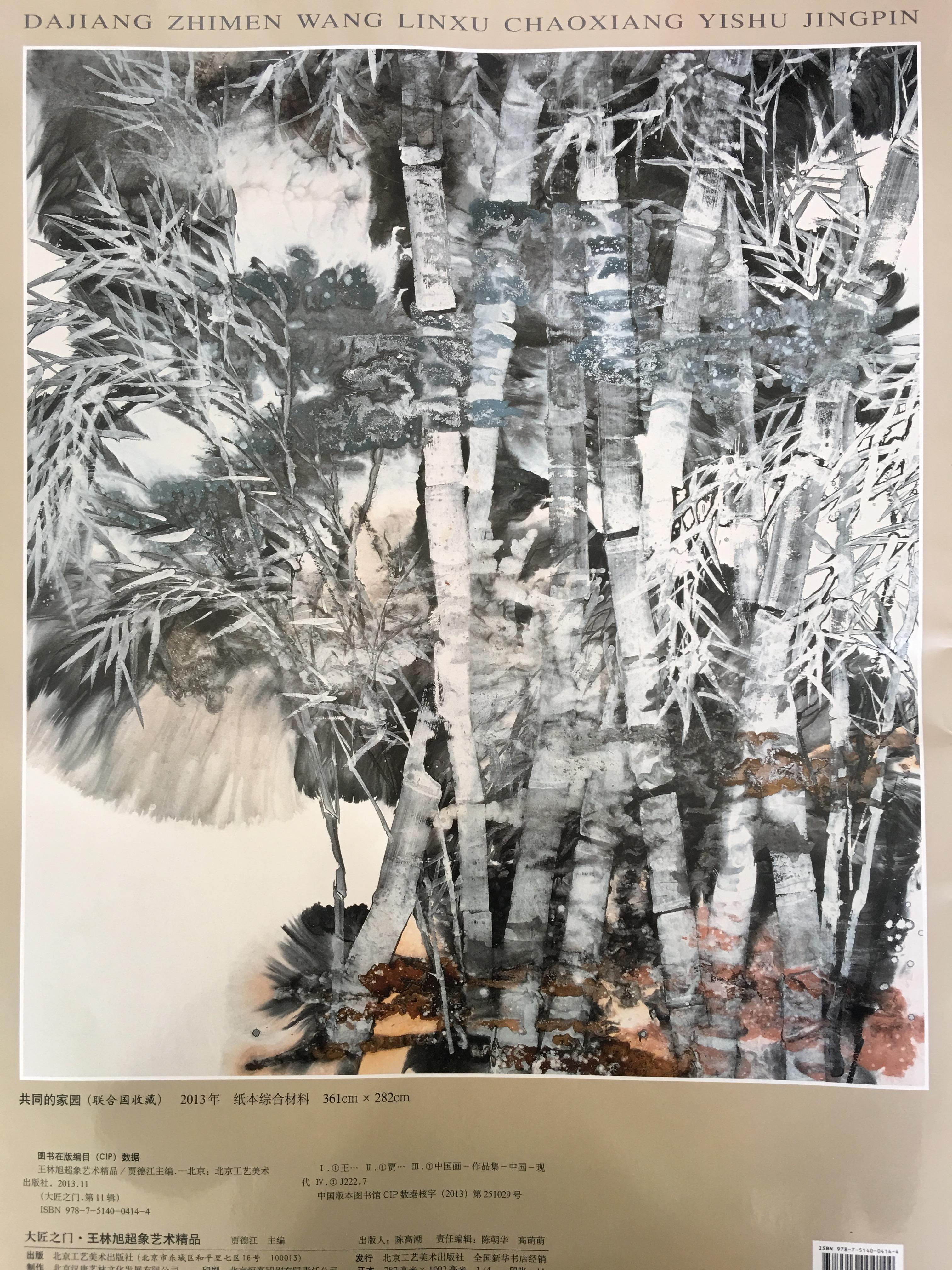 王林旭:首先,这是中国画所追求的境界?!疤烊撕弦弧钡恼苎Ч垡彩俏掖醋鞯某龇⒌?。不管是早期画竹,还是后来画的超象艺术,“天人合一”的思想贯穿始终。其次,从艺术创作角度来说,总结和继承中国传统绘画中的精髓,是中国绘画创作中的核心。同时,借鉴和吸收外来艺术和文化中的精华,推动中国绘画艺术的发展,是当下中国艺术面向世界、走向世界的语言和窗口。还有,“天人合一”也有其时代感。在信息化时代,中国的绘画艺术中“天人合一”思想也要有信息化时代的思想,有信息化时代的“天人合一”。因而,艺术创作也应顺应时代、表现时代、反映时代。所以我的《共同的家园》和《互动的世界》两幅表现时代思考的作品被联合国收藏。我认为,中国文化走出去,需要在“天人合一”哲学观的前提和观照下,审视今天人们对艺术和文化的感知与审美。让世界读懂中国,那么就要让世界读懂中国的文化、中国的艺术和中国的美术,中国的文化、艺术和美术就要有中国的思想、中国的风格、中国的精神和中国的气派。