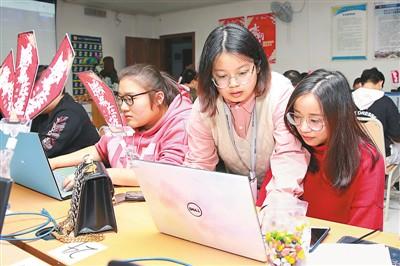11月11日凌晨,浙江广厦建设职业技术学院综合楼内灯火通明,该校700余名学子在老师和企业技术指导的带领下备战“双11”线上销售实战训练。胡扬辉摄(人民视觉)