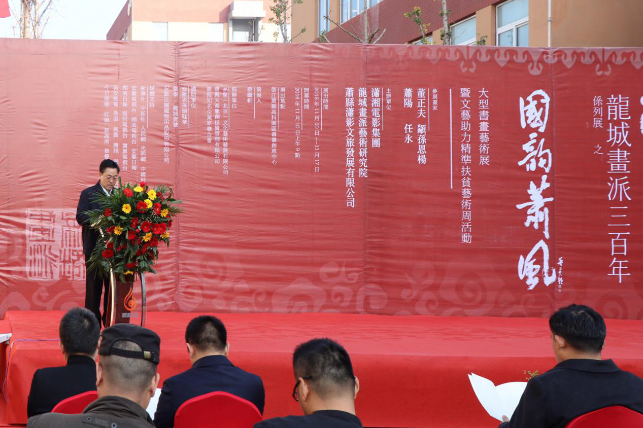 潇湘电影集团党委委员、工会主席朱伟华代表主办方出席“龙城画派三百年”系列书画展暨“文艺助力精准扶贫”艺术周开幕式并致辞?!¤骱∩阌?/p>