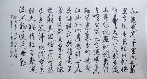 除此之外,他还每天坚持读书看报,时刻关注时政新闻,家里面的党报党刊他一天不落地学习。因此,他发自内心的为中国改革开放40年来取得的辉煌成就而高兴,为城乡发生的巨大变化而欣慰,他书写的内容也在传统文化的基础上逐步扩大范围,与时代发展的步伐相一致,与时俱进。他把自己对书法艺术的追求与社会公益事业结合起来,不计名利,忘掉得失,只要对社会有益,能够对人们起到潜移默化的作用,他就把书法作品相赠送。