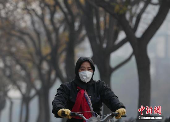 北京市民在雾霾中出行。中新社记者 刘关关 摄