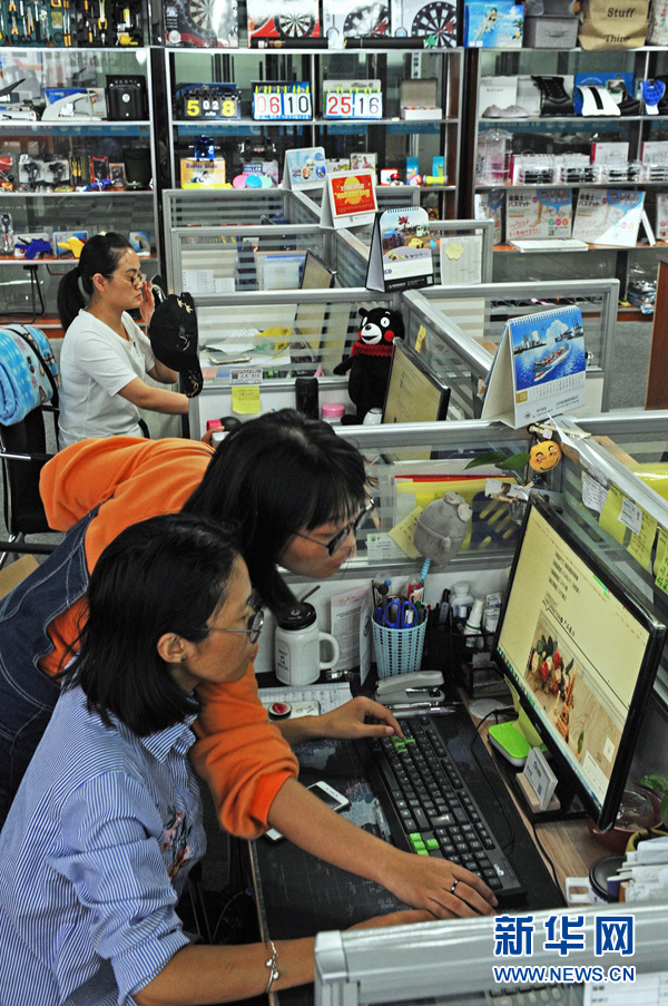 义乌市一家创意公司的员工在设计电商网站页面(9月12日摄)。新华社记者 谭进 摄