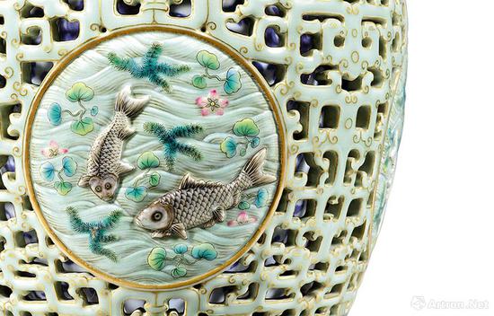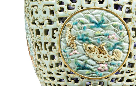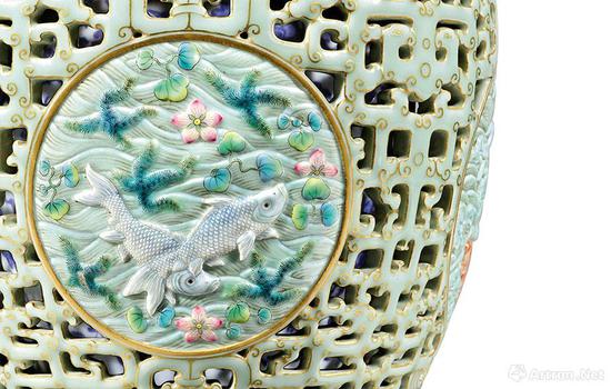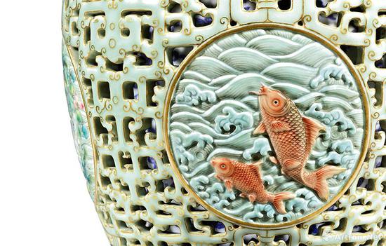 乾隆洋彩黄地粉青透龙夹层玲珑尊约1.5亿港币成交