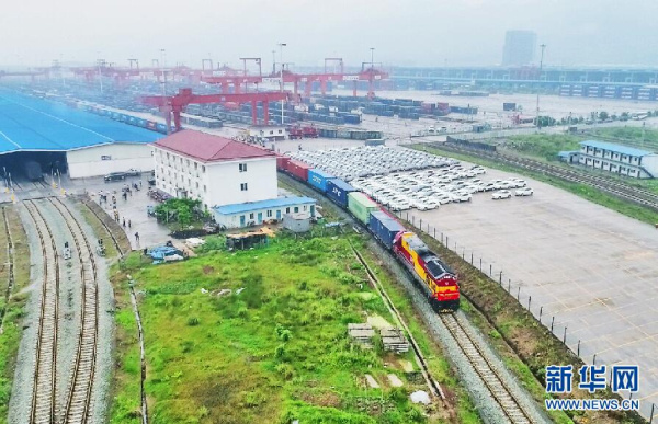 中新互联互通项目国际陆海贸易新通道上的“渝黔桂新”铁海联运班列。 新华网发 (何超 摄)