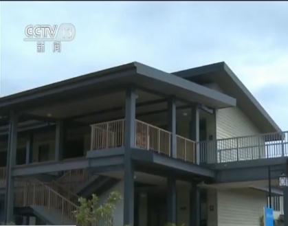 中建钢构布图卡学园项目经理 马帅:在建设的初期,包括在设计阶段,经过充分的调研,我们还考虑了比较多的当地的元素,比如我们看到的这些比较大的斜屋面,还有这种架空的设计,我们都已经把当地这些好的东西都吸取了。