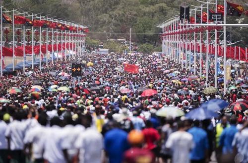 △11月16日,中国援建的独立大道正式启用,上万名当地群众走上崭新的路面。(新华社记者拍摄)