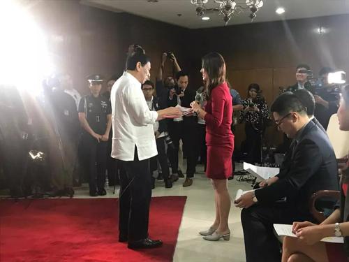 △习近平访菲前,杜特尔特总统接受了央视记者黄铮铮采访。他在采访结束后说,希望能制作一本带有中国记者照片的相册,这样他就能记住中国人民的善意。(照片由菲律宾新闻部长拍摄)