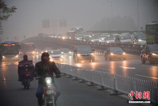 11月14日,北京市民在重污染天气出行。 中新社记者 贾天勇 摄