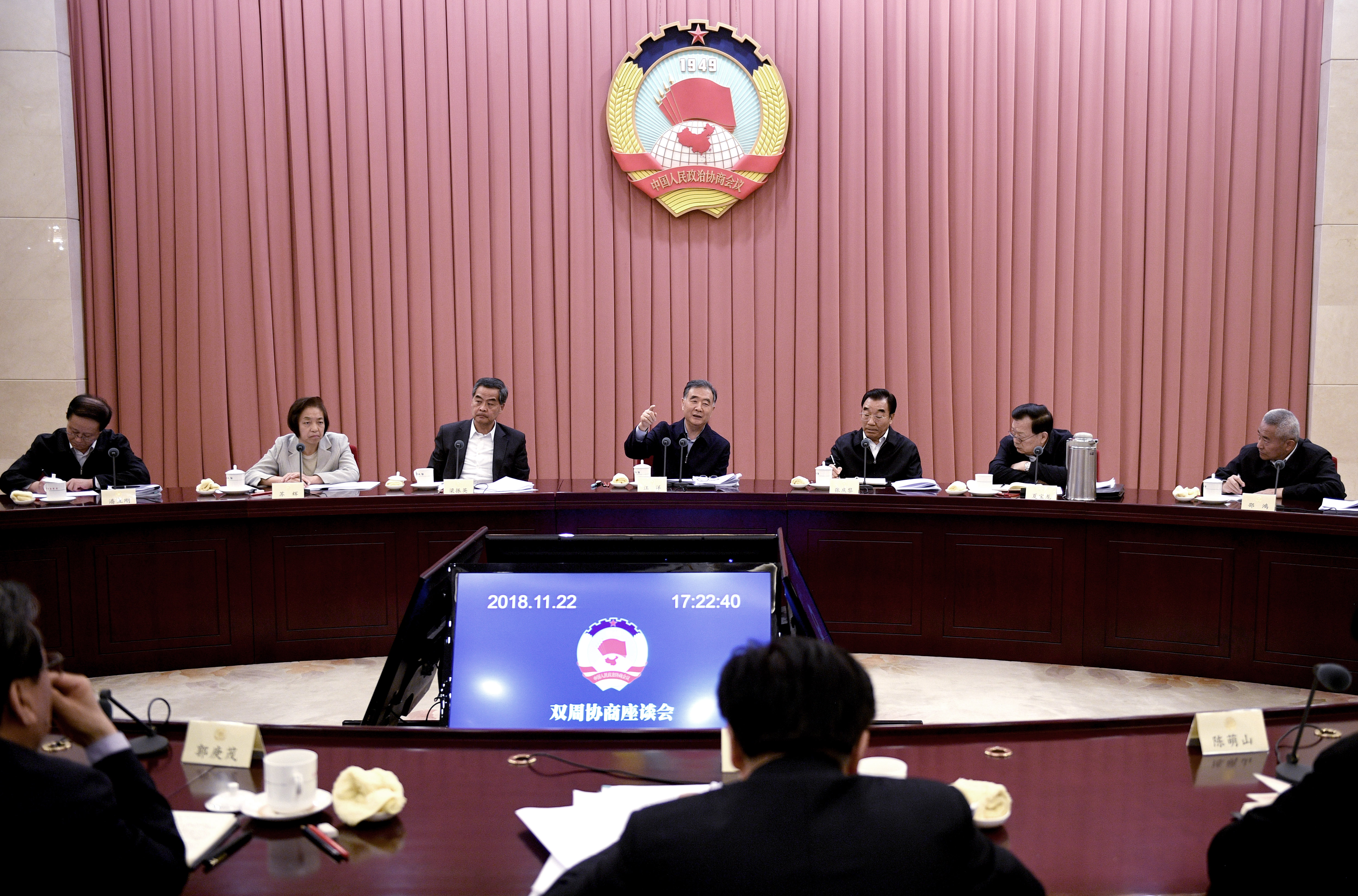 11月22日,十三届全国政协第十五次双周协商座谈会在北京召开,围绕“妥善解决特色小镇建设中存在的问题”建言资政。中共中央政治局常委、全国政协主席汪洋主持会议并讲话。 人民政协报记者 田福良 摄