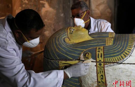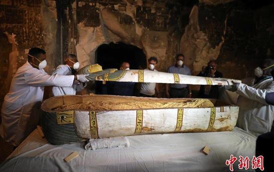 埃及卢克索新发现一座贵族墓葬 墓内有木乃伊棺材