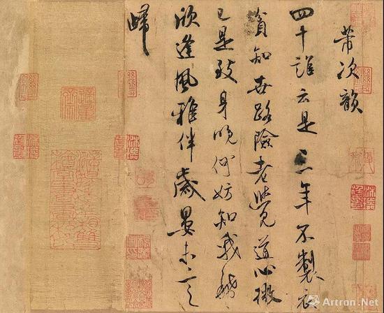 米芾提拔 [芾次韵 四十谁云是,三年不制衣。贫知世路险,老觉道心微。 已是致身晚,何妨知我稀。欣逢风雅伴,岁晏未言归。]
