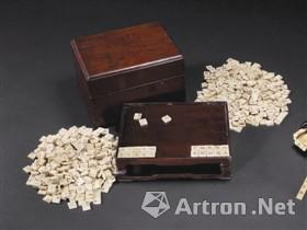 这套清晚期象牙刻组字诗牌(见图),有792枚正方形诗牌以象牙制成,其中红、蓝二色各396枚,每枚均双面阴刻小楷汉字,并填色用以区分游戏双方,正面字体较大且居于正中,背面则按平仄将音形相同或相近的汉字缩小刻于右上角,为旧时文人组诗游戏用品,用于饮酒、茶会、雅集等活动,即可比试才情,亦可娱乐。这套诗牌有原配木盒及拼字木托。