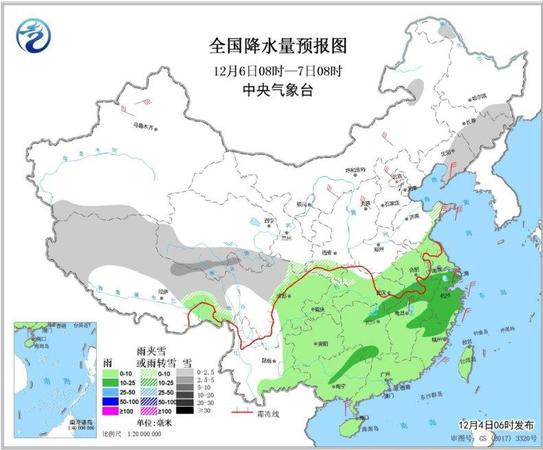 图1 全国降水量预报图(12月4日08时-5日08时)