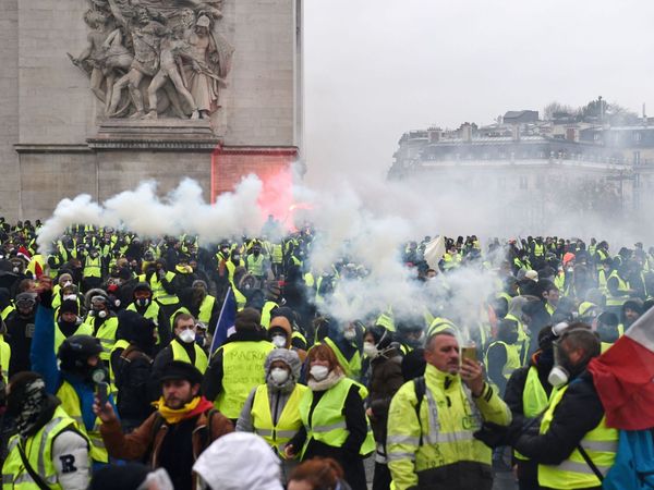 聚集在凯旋门附近的示威者(图源:路透社)