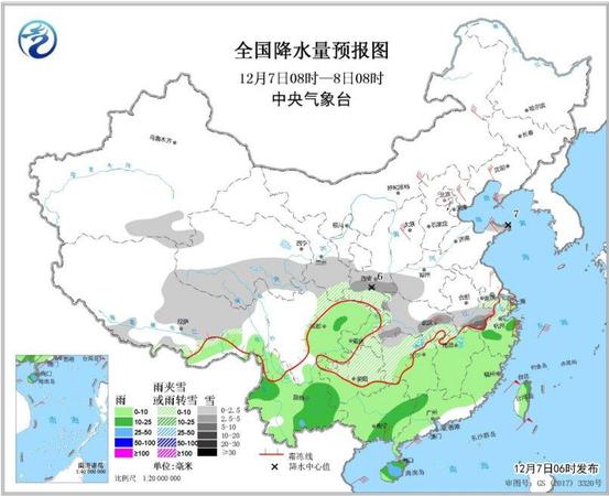图3 全国降水量预报图(12月7日08时-8日08时)