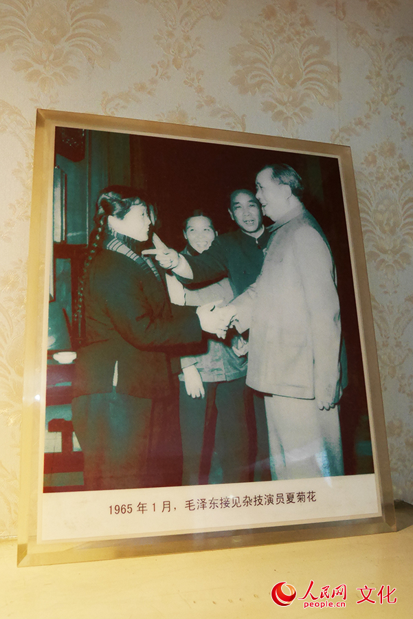 夏菊花:我本不姓夏,姓徐。5岁时,家里穷得揭不开锅,父亲把我送给了夏家班的夏老板做“押子”,从此改为姓夏,过起了杂耍艺人跑江湖的日子。那段时间为了生计而奔波,非常辛苦。在表演《空中飞人》时,用一根粗绳子绑住我的辫子,升吊在半空荡秋千。每演下来,用手摸头,头发掉下一把。那时候,杂技只是我的饭碗,当时唯一的目的就是活下去。