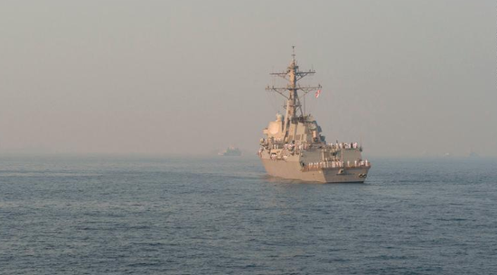 在日本海进行“自由航行”的阿利·伯克级导弹驱逐舰“麦克坎贝尔号”(图片来源:CNN)
