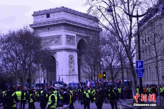 图为示威者在香榭丽舍大街聚集。中新社记者 李洋 摄